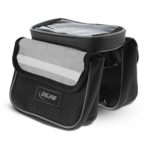 Diese Rahmentasche kann auf jedem Fahrrad schnell und einfach durch Klettverschlüsse befestigt werden.Sie besteht aus wasserabweisendem Oxford-Nylon und besitzt insgesamt drei Taschen, zwei davon sind seitlich angebracht und ideal geeignet für Ihre Geldbörse oder ein kleines Notfallset. Die dritte Tasche besitzt ein Sichtfenster mit Touchscreen-Support für Ihr Smartphone und ermöglicht Ihnen dadurch eine einfache und sichere Bedienung Ihres Smartphones, ohne es aus der Tasche nehmen zu müssen.Zusätzlich lässt sich die Smartphone-Tasche von der Fahrradtasche entfernen und separat nutzen.